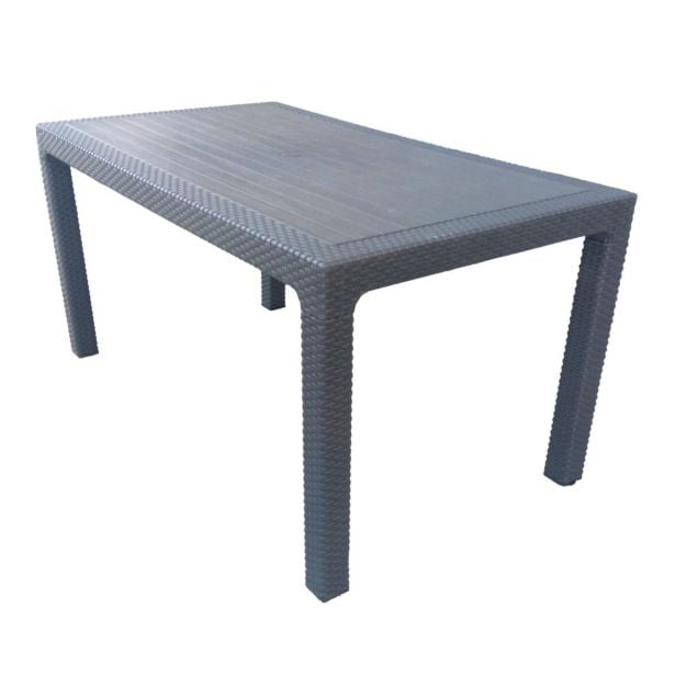 Praktična vrtna miza bo našla idealno mesto na vsakem vrtu ali balkonu. Izdelana je iz kakovostne plastike v elegantnem in modernem videzu iz ratana in lesa. S površino 150 x 75 cm nudi dovolj prostora za odlaganje hrane in pijače.