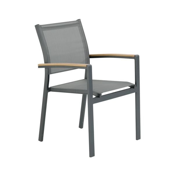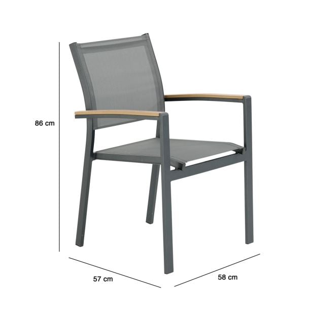 JEDILNI NASLONJAČ CLARA ALU SINTETIČNI LES TEMNO SIV