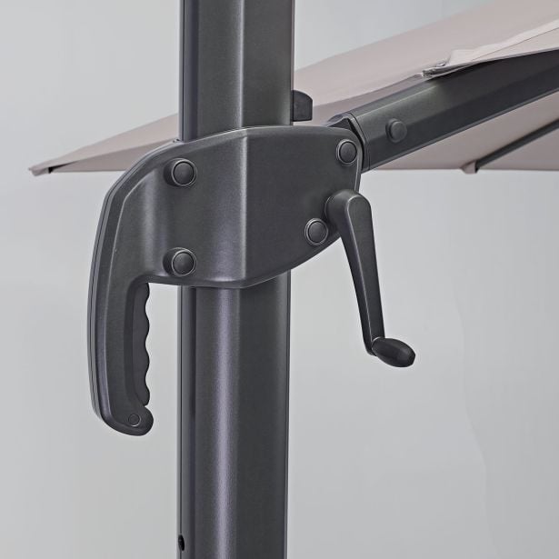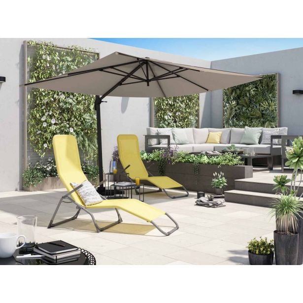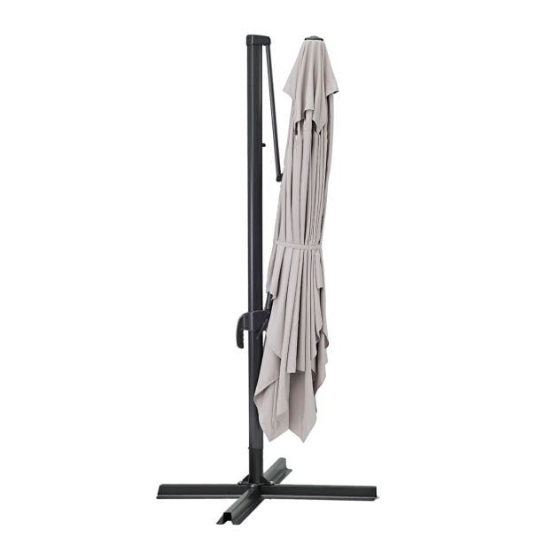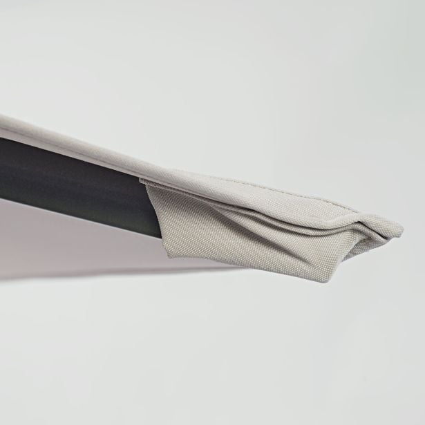 Aura Side odmični senčnik ščiti vaše goste pred soncem na veliki površini. Njegovo zelo debelo pravokotno platno dimenzij 2,9 x 3,9 metra je vodoodbojno in blokira 100 % UV žarkov, kar zagotavlja popolno zaščito pred sončnimi žarki. Ko se sonce premika lahko senčnik enostavno zavrtite za 360° in ga lahko tudi nagnete za optimalno senčenje. Nova bela različica iz serije Aura prinaša svežino in eleganco na vašo teraso. Po uporabi ga enostavno zaprete z bočnim ročajem in krmilnim mehanizmom. Senčnik je opremljen s podnožjem, ki ga je treba obtežiti, da zagotovi stabilnost. Njegova aluminijasta struktura je odporna na rjo in vremenske vplive, kar zagotavlja dolgo življenjsko dobo. Platno senčnika lahko zamenjate, kar omogoča prilagoditev vašemu spreminjajočemu se okusu in podaljša življenjsko dobo izdelka.