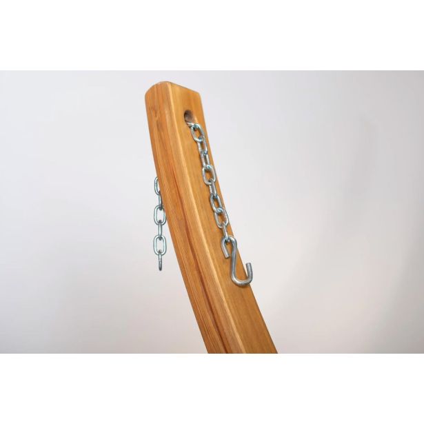 Elegantno leseno stojalo za visečo mrežo velikosti do 400cm. Narejeno iz naravnih materijalov – iz sibirskega macesna s certifikatom. Stojalo je zaščiteno proti vremenskim vplivom in zato zelo trpežno – idealno za uporabo na vrtu. Patentiran QuickExtend sistem za namestitev mreže.