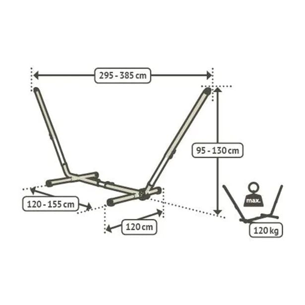 – Stojalo je primerno za La Siesta viseče mreže Single (300cm) ali Double(350cm) in ga lahko obremenite s 120kg.