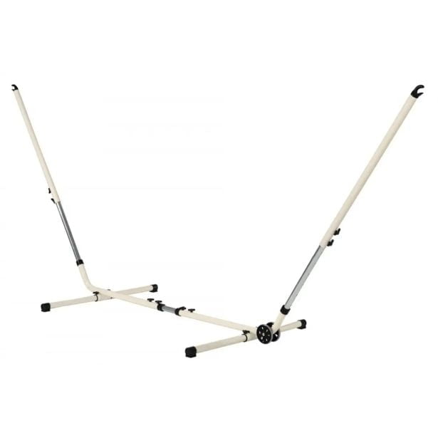 Jekleno stojalo za visečo mrežo. Stojalo sestavite ali razstavite v dveh minutah in ga zato lahko peljete s seboj kamorkoli in si ustvarite svojo oazo miru.