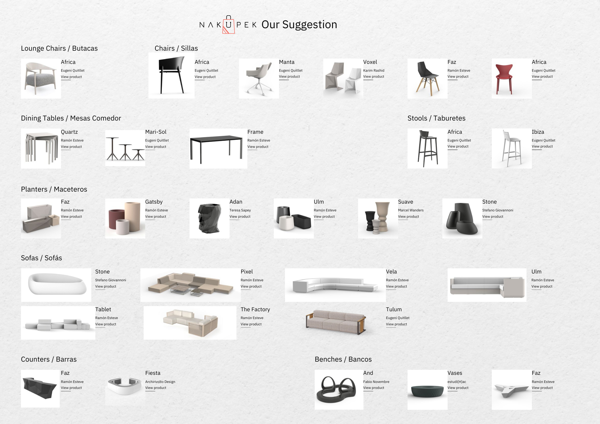Africa Chair, ki ga je oblikoval Eugeni Quitllet, združuje sodobno estetiko, ergonomsko obliko in vrhunske materiale. Njegove mehke linije in udoben sedež omogočajo prijetno sedenje v notranjih in zunanjih prostorih. Eleganten in preprost dizajn se popolnoma zlije s sodobnimi ambienti.