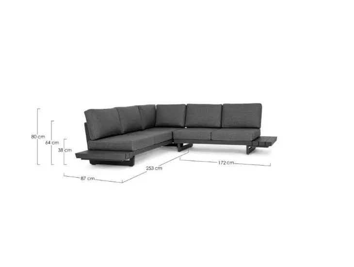 – Š: 253 cm x 172 cm x V: 80 cm x G: 87 cm
