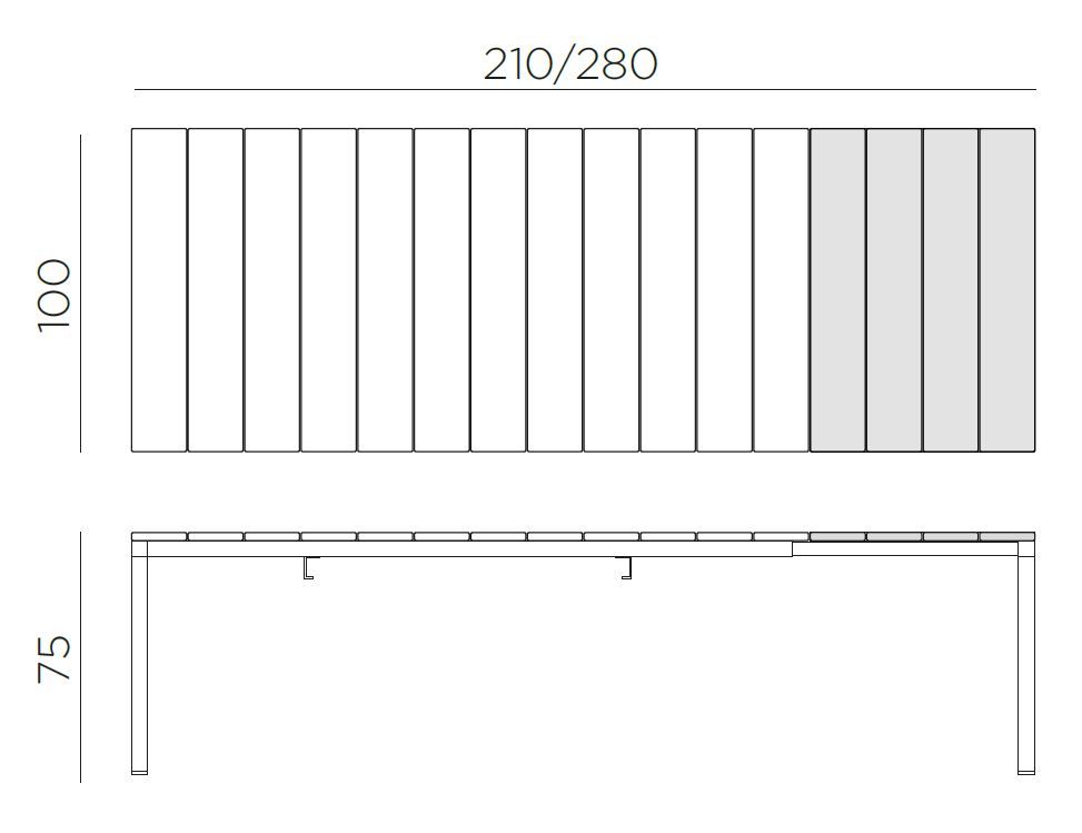 Miza RIO ALU 210 je v celoti narejena iz aluminija v beli barvi, se pravi, da je tudi celotna zgornja plošča narejena iz aluminija (pri cenejšem modelu mize RIO 210 so krovne plošče narejene iz pvc materiala). Okvir mize je izdelan iz prevlečenega aluminija. Miza ima odlično zasnovan drsni mehanizem s pomočjo katerega se miza raztegne na 280cm. Ta sistem omogoča, da so noge mize vedno na koncu mize, kar zagotavlja odlično stabilnost mize, tudi ko je le ta raztegnjena. Sistem hitrega pritrjevanja podaljškov nam omogoča hitro predelavo mize iz 210 na 280cm. Raztegljiva vrtna miza RIO ALU 210 v beli barvi, odličnega italijanskega proizvajalca vrtnega pohištva NARDI. Kombinirajte jo s poljubnimi stoli, še posebno priporočamo stole NET, ki se po dizajnu lepo podajo k mizi Rio. Odločite se lahko za stole v antracit barvi ali pa vašo teraso popestrite s stoli NET v rumeni barvi. Skrbno izbrani materiali in njihova kvalitetna zasnova nudita odpornost in trpežnost navkljub vsem vremenskim pojavom in tako zagotavljata kvalitetno izkušnjo vam in vaši družini.
