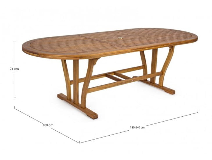 Vrtna raztegljiva miza NOEMI OV 180-240X100 je narejena iz lesa in čez ima oljno oblogo.