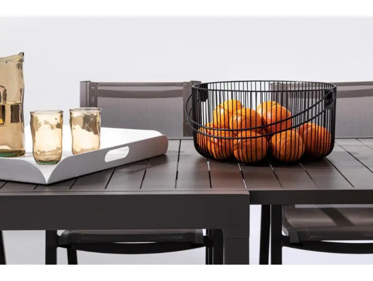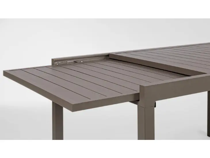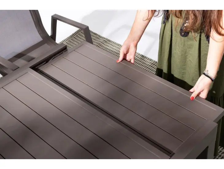 Vrtna raztegljiva miza PELAGIUS v kava barvi. Miza je narejena iz aluminija.