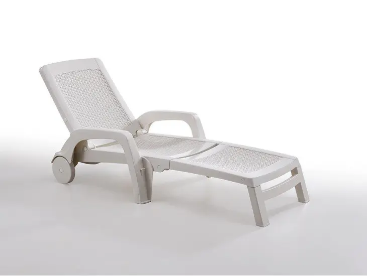 Enostaven in praktičen vrtni ležalnik MIAMI – bel je narejen iz plastične mase. Dobavljiv je v beli barvi. Ležalnik je zložljiv, v naslonu ima predal za spravilo predmetov in kolesa za lažje premikanje. Ležalnik ima več pozicij nastavitve vzglavnika in tudi opcijo ležišča. Narejeno v EU.