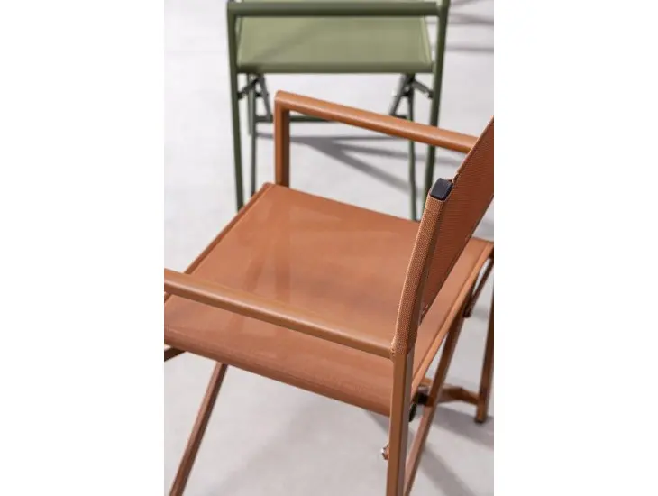 Vrtni stol TAYLOR OPEČNATA. Stol ima aluminijasto konstrukcijo, okovje pa iz jekla. Sedež in naslon za hrbet sta iz tekstila. Stol je zložljiv.