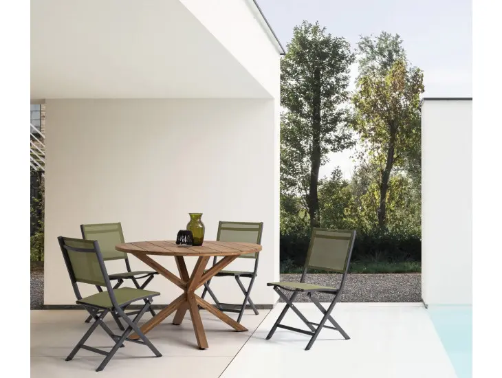 Zložljivi vrtni stol ELIN ANTRACITE zelena je narejen iz aluminija, prašno barvanega. Hrbet ter sedež sta iz tekstila. Eleganten videz in barva popestrista vašo okolico.